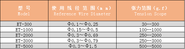 注:以上參數(shu)表(biao)因(yin)機(ji)型與(yu)系統(tong)張力不一樣可能(neng)有(you)偏差,以上線徑范圍(wei)僅供參考,若有(you)異議及時與(yu)技術人(ren)員溝通